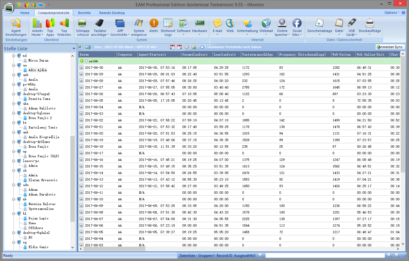 Wenn Sie auf der Suche nach einer robusten, umfassenden, bewährten und vertrauenswürdigen Mitarbeiter-Monitoring-Software-Lösung sind, dann brauchen Sie nichts weiteres als iMonitor EAM. Diese Software lässt Sie nicht nur effektiv jede Aktivität Ihre Mitarbeiter auf ihrem Computer überwachen, es kann Ihnen auch die Möglichkeit geben, die Kontrolle über ihren Rechner vollständig zu übernehmen.